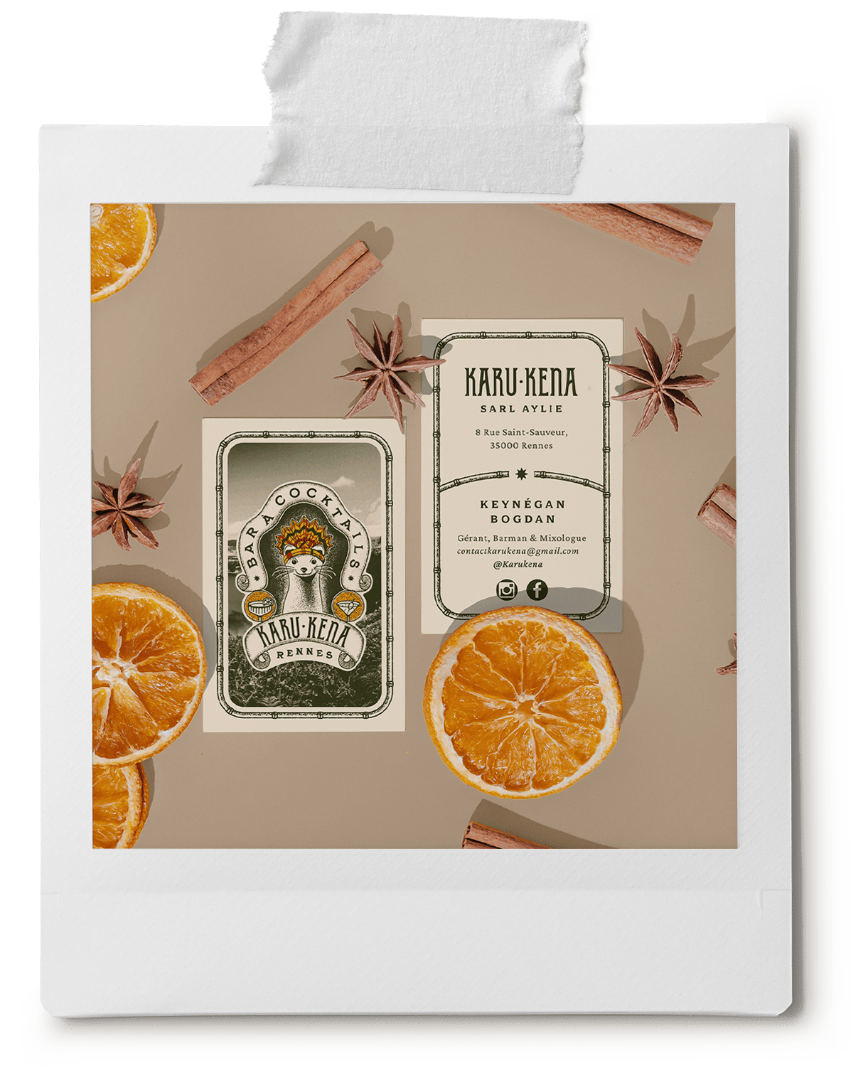 Nous commençons par des crayonnés qui aboutissent à un logo complet, à une charte graphique complète et à une identité visuelle finie, vous permettant d'utiliser ce visuel lettré et/ou illustré sur vos divers supports de communication : cartes de visites, flyers, menu/cartes de restauration, packaging & étiquettes...
